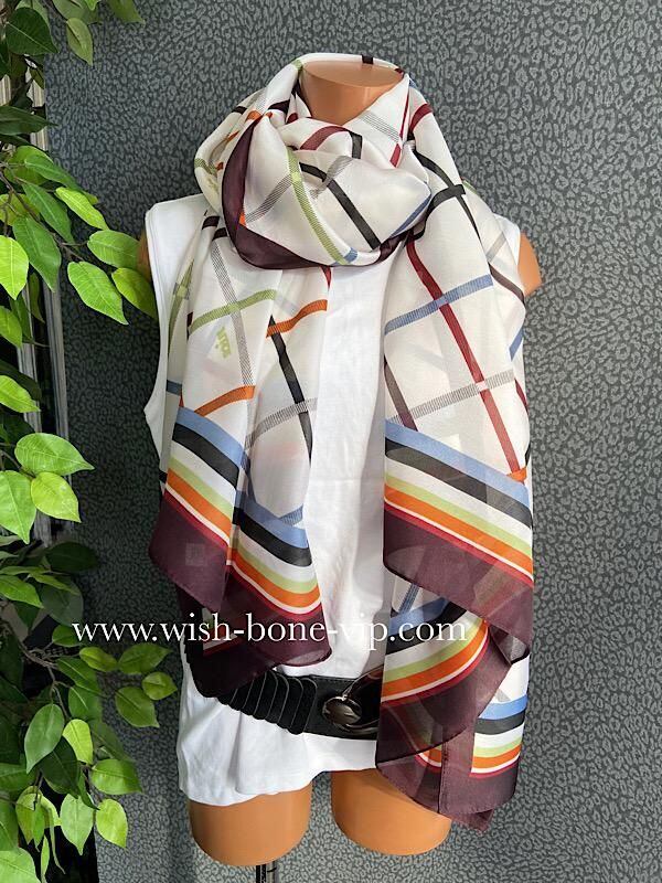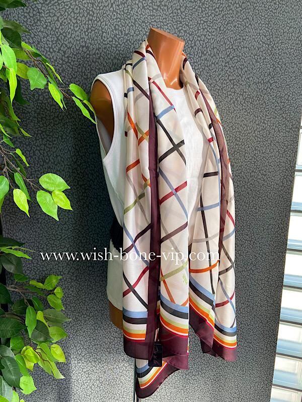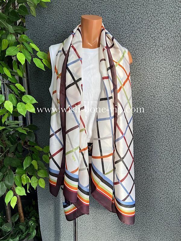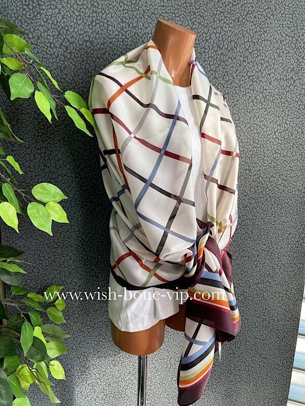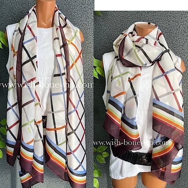 SALE イタリアインポート 大判ストール&ロングスカーフ・ツヤ系スカーフ|180x85cm ポリエステル/レトロ色チェック