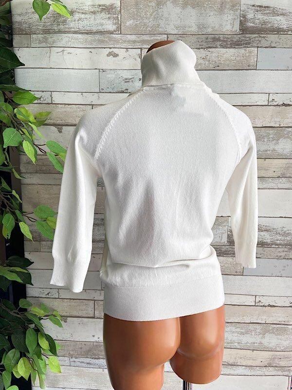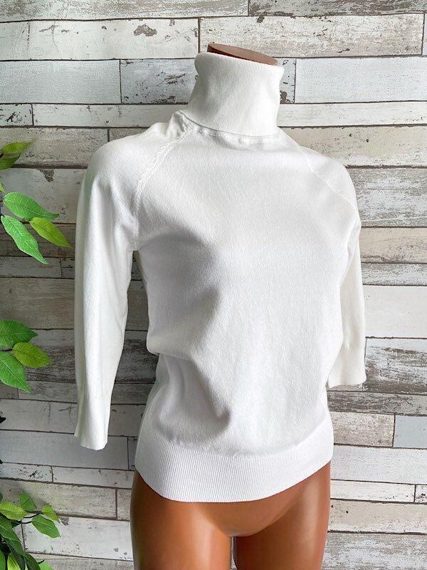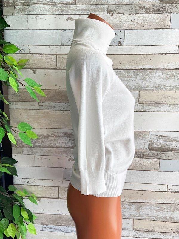 【イタリア製 Made in ITALY七分袖&タートルニットセーター】肌触り良いビスコース ・トップス/ホワイト