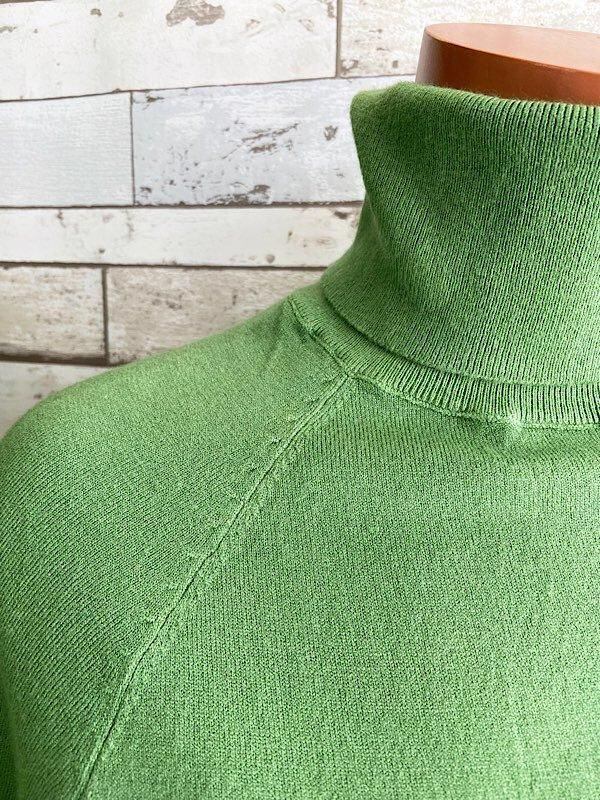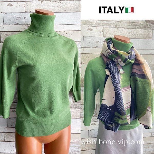 【イタリア製 Made in ITALY七分袖&タートルニットセーター】肌触り良いビスコース ・トップス/グリーン