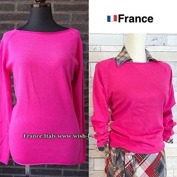 【最終ストックSALE】フランスインポート|ビスコース&レーヨン|ボートネック 長袖ニットトップス/ピンク