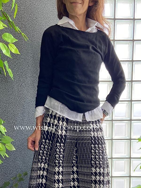 シンプルで持ってるとコーデにとても便利なジャージっぽい長袖トップです。シルエットが細身タイトで腕も長くスッキリしたデザインですので、いろいろ使えると思います。今あるワンピースの上から着ると、上部が無地になるのでコーデしやすいですよ。もちろん普通にスカートやパンツにあわせてもOK.何色か持ってると便利で使えるかと!やわらかくて暖かいのでジャケットの中に着てもゴワゴワしないのもいいかも。