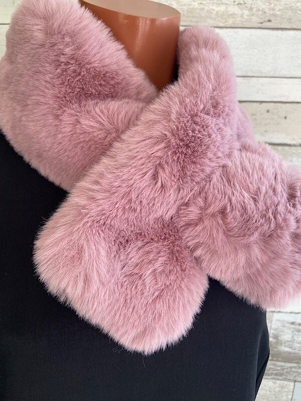 【フランスインポート】フェイクファー・ティペット・マフラー・襟巻き フワフワ暖かいスヌード/ピンク