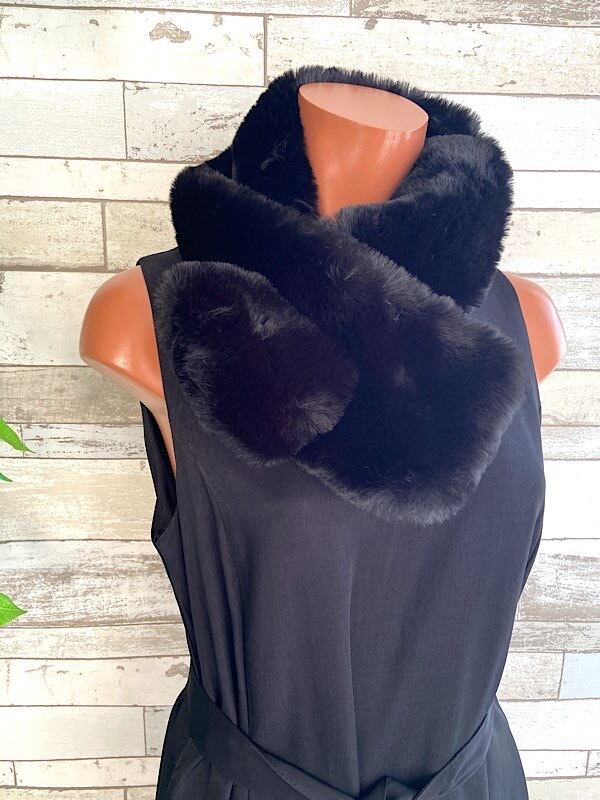 【フランスインポート】フェイクファー・ティペット・マフラー・襟巻き フワフワ暖かいスヌード/ブラック