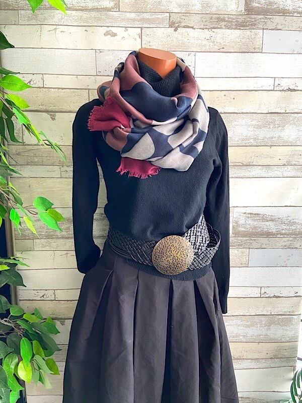 肌触りもよく、巻く位置によって色んな色を楽しめるので1枚持ってると違った雰囲気を作れそうですよ。ぐるっと巻いてもOK.肩から掛けるだけでも、ガラッとコーデのイメージが変わり、新鮮な気分♪です。