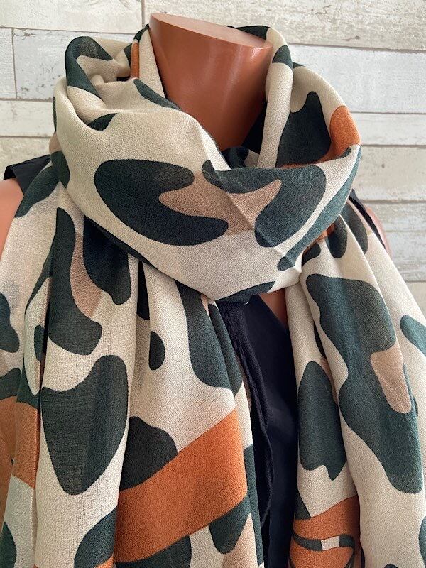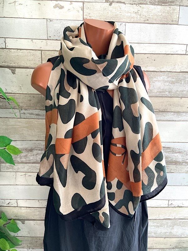 インポート 大判ストール|190cm ロングストール・スカーフ|ブラウン&モスグリーンカモフラ|VISCOSE