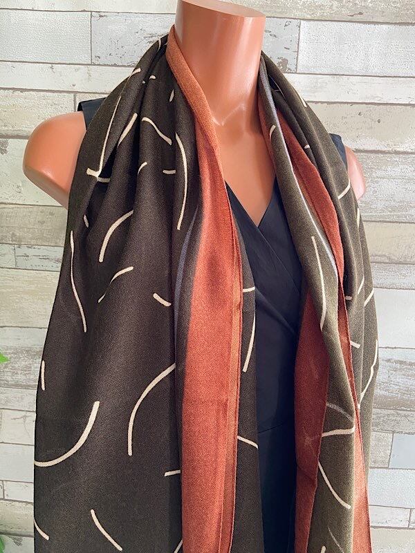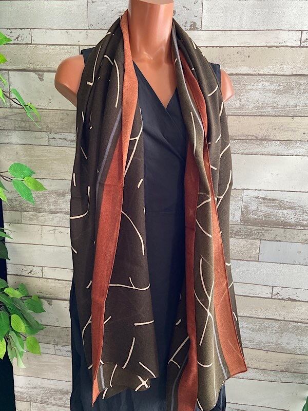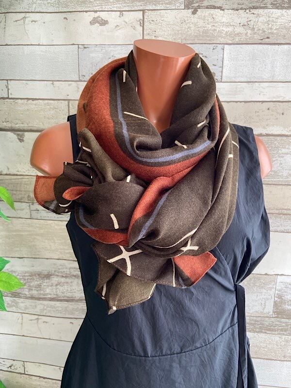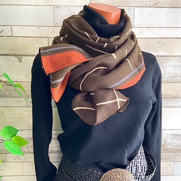 ぐるっと巻くだけでも良いですし、垂らすだけでもオシャレ。肩から羽織るように掛けるだけでも、ガラッとイメージが変わり新鮮な気分♪です。プレゼントにも最適です。