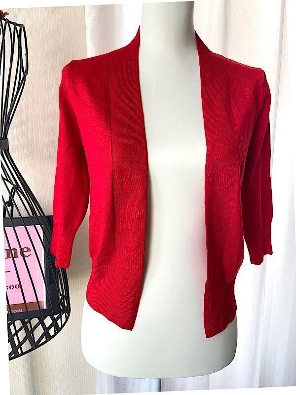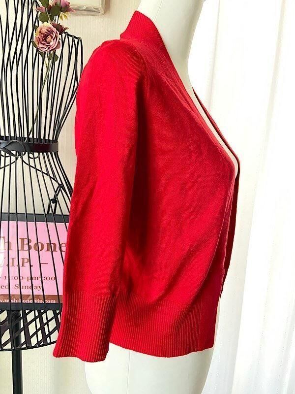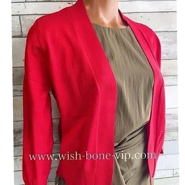 USAインポート なめらかヴィスコース混 七分袖カーディガン/レッド