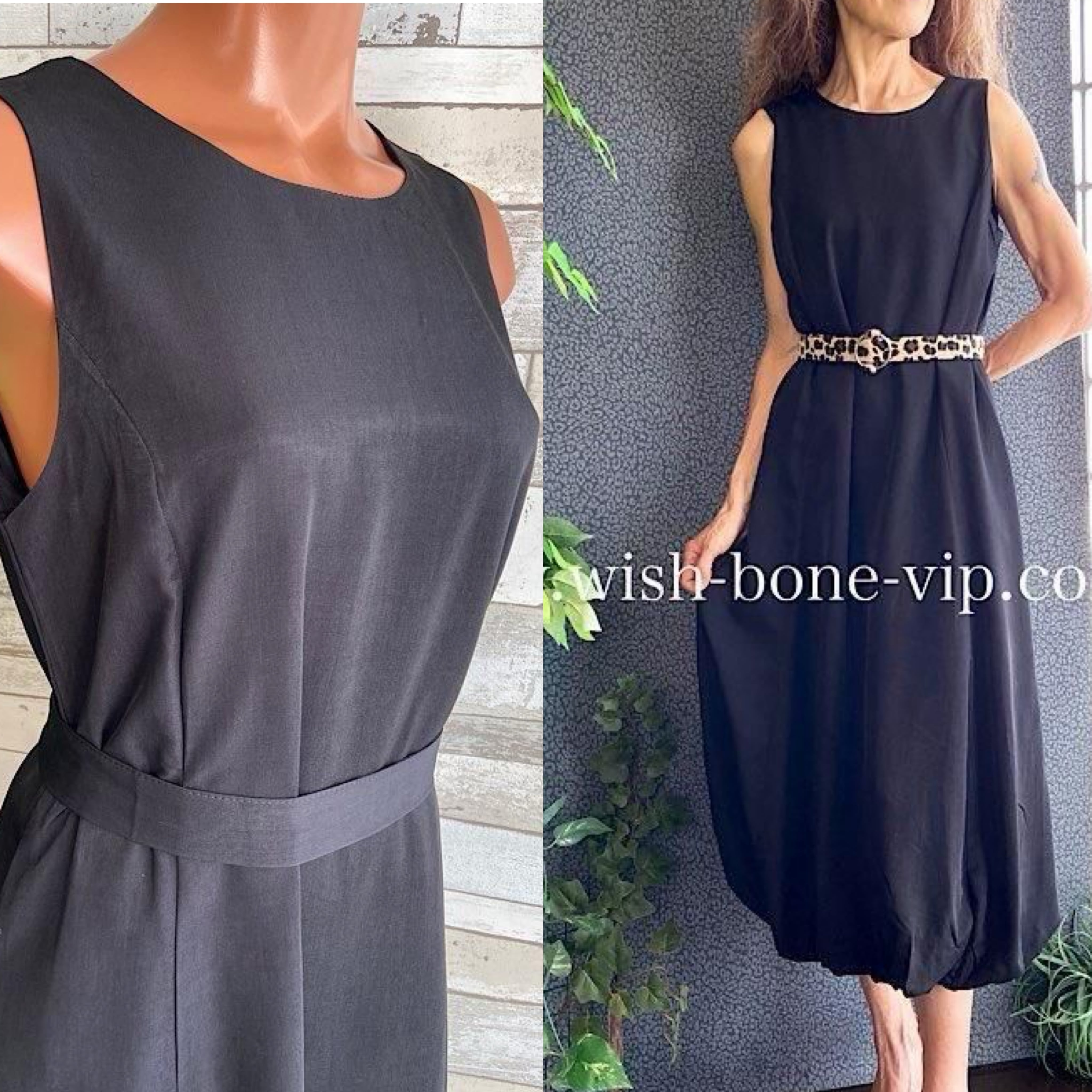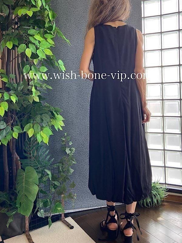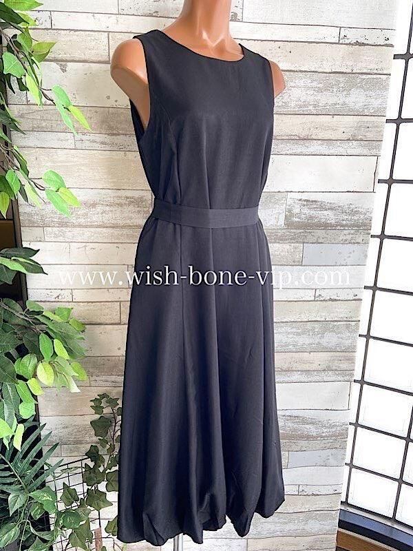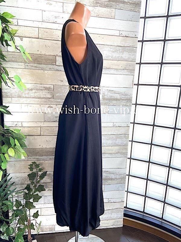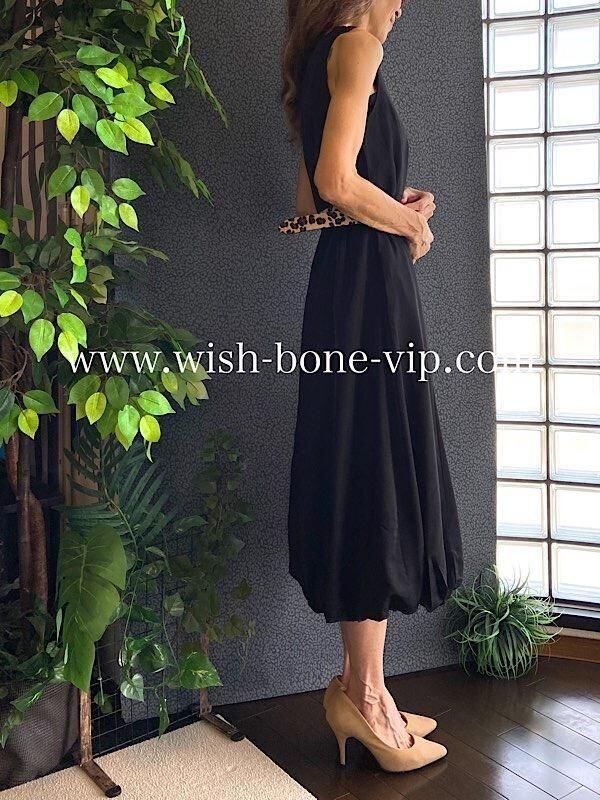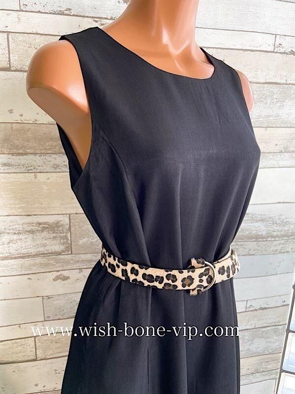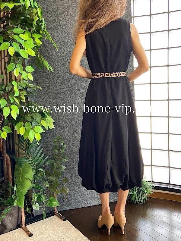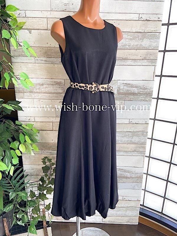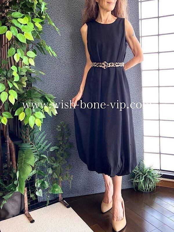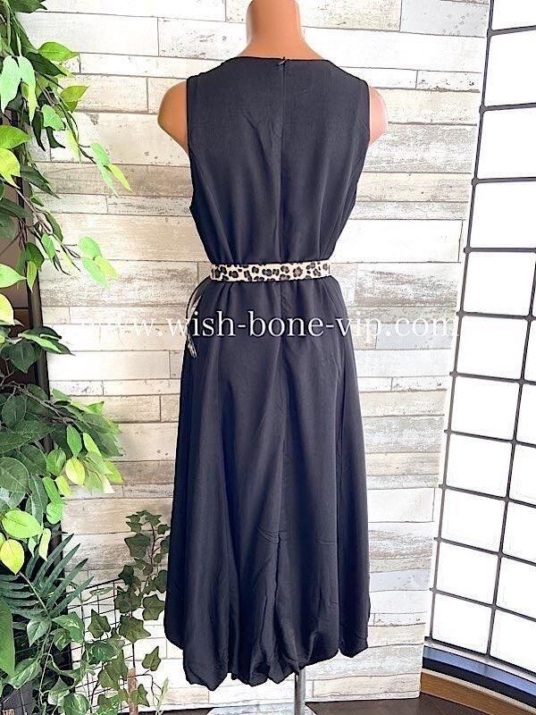 インポートロングワンピース バルーンワンピース 無地ワンピース /レオパード ベルト付き / ブラック
