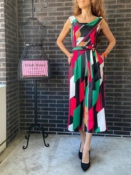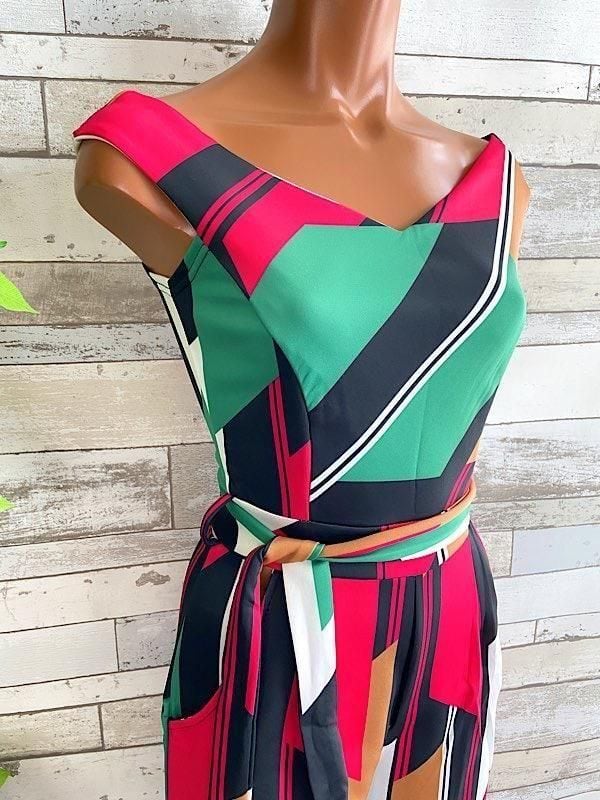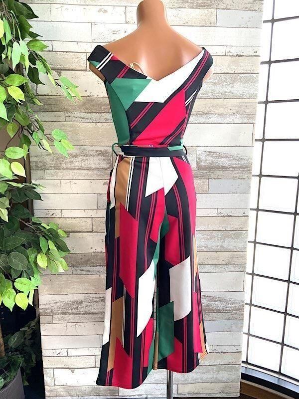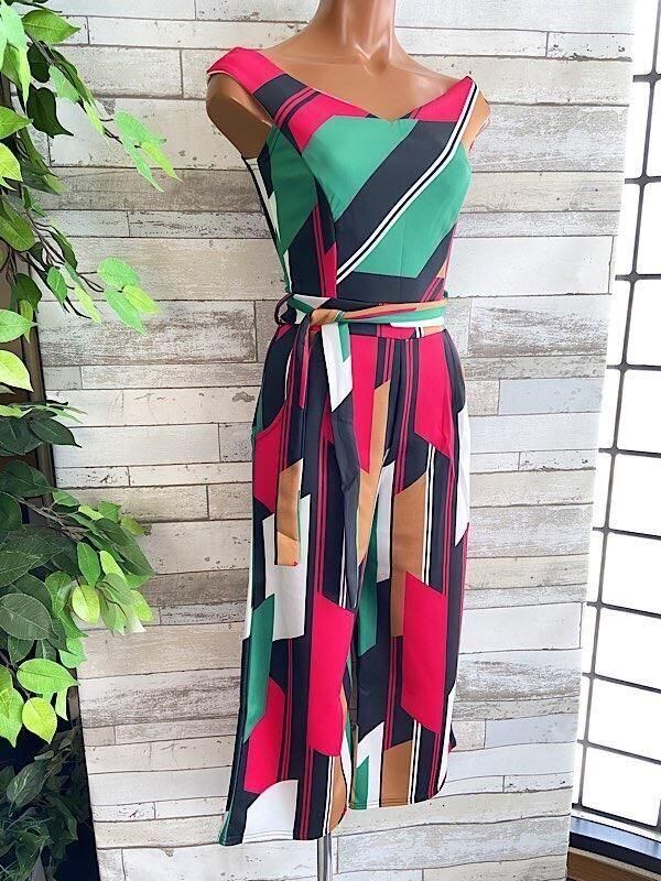 在庫処分SALE UKインポート/ロンドン|イタリアンカラー ロンパース・オールインワン|オフショルダー・ミモレ・ロング/レッドグリーン