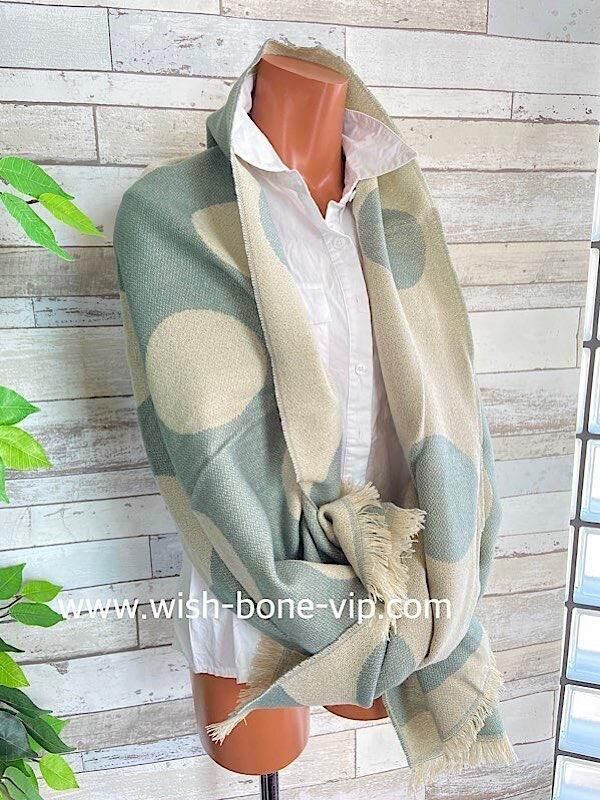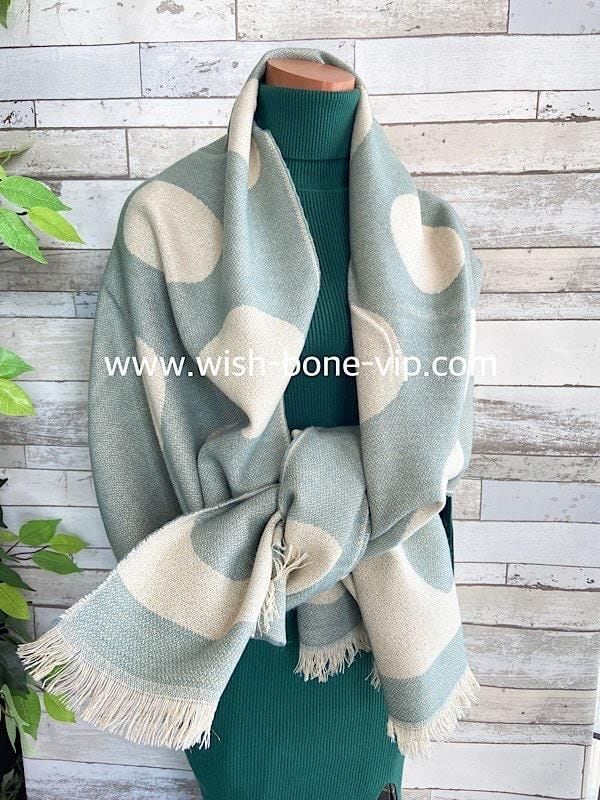 SALE /フランスインポート大判ロングストール・ショール・アウターストール・暖かい冬物 ・リバーシブルひざ掛けショール・厚手ストール/グリーン系ドット