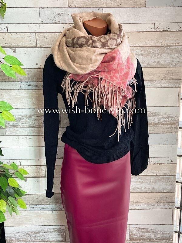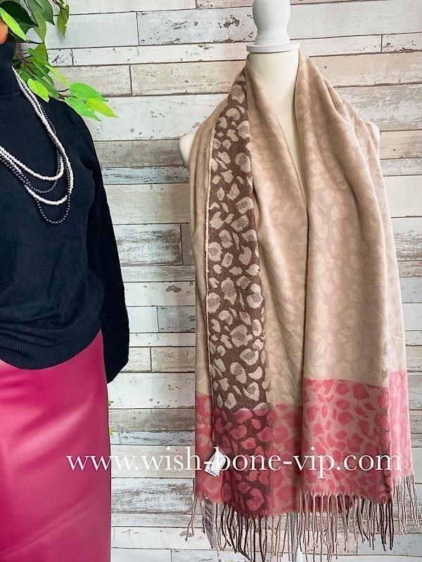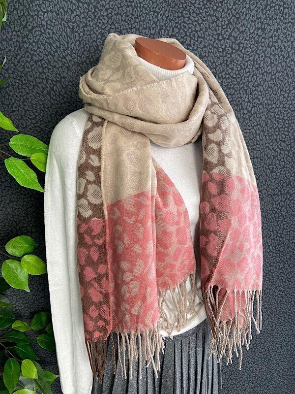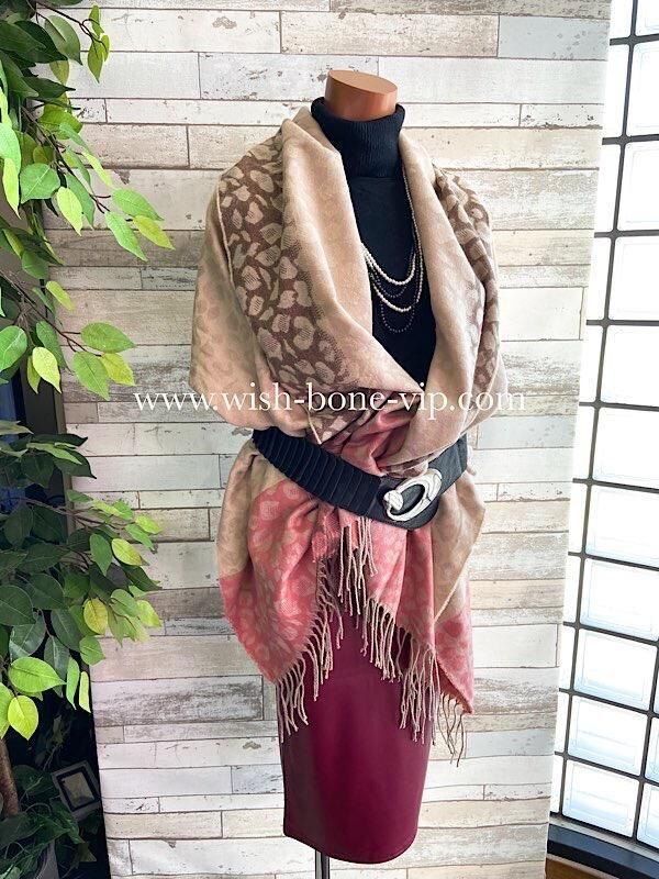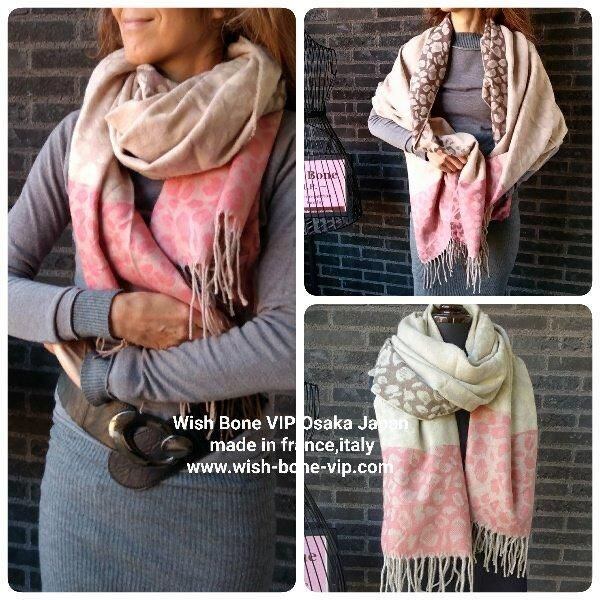 SALE 【フランスインポート】大判ストール・ロング・厚手ショール| 暖かい冬物 ストール・ショール・肩掛け・ひざ掛け/淡ピンク&ベージュレオパード