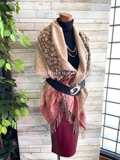 淡い色合いが優しい大判で暖かい肩掛けストールです。レオパードがさりげなくてお洒落ですよ。肩から羽織って、ベストの様なコーデや、ひざにかけたり、マフラーのように巻いてもいいかも。ボリューム感がおすすめです