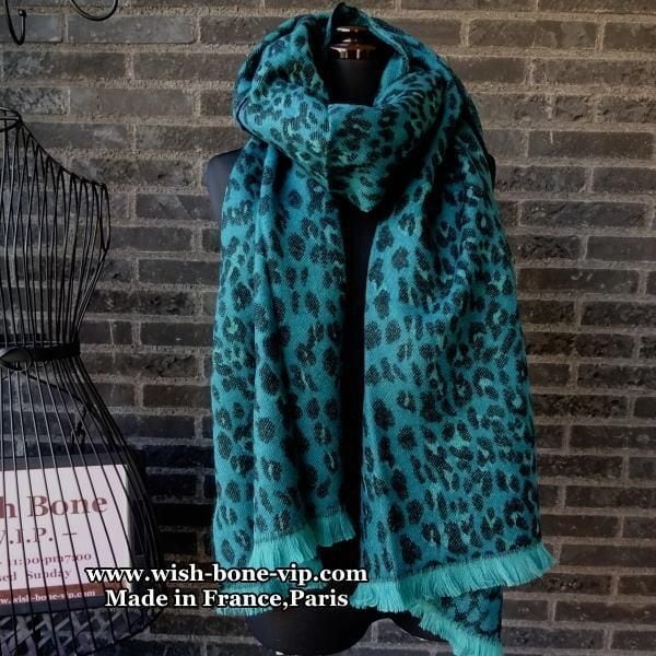 フランスインポート大判ストール・厚手・冬物ショール・厚地ロングマフラー 暖かい冬物 ストール・ショール・肩掛け/グリーンレオパード