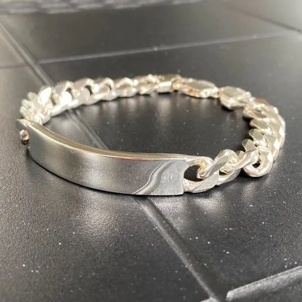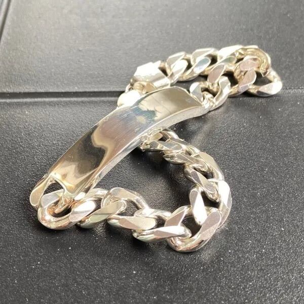 喜平シルバーブレスレット 太め9mm 20.5cm プレート シルバー925 イタリア製 メンズブレスレット