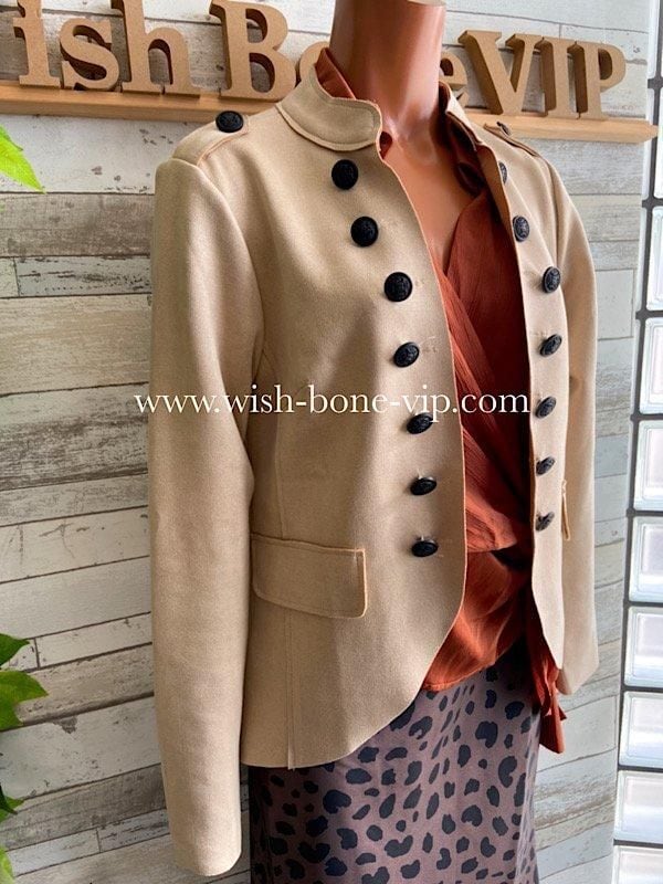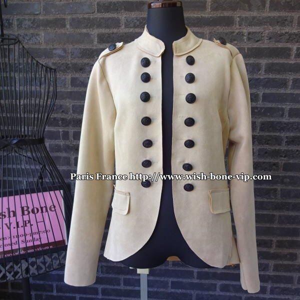 フランスインポート ミリタリージャケット|スウェード風&ストレッチ ジャケット/ベージュ(L) アウトレットSALE/返品交換不可
