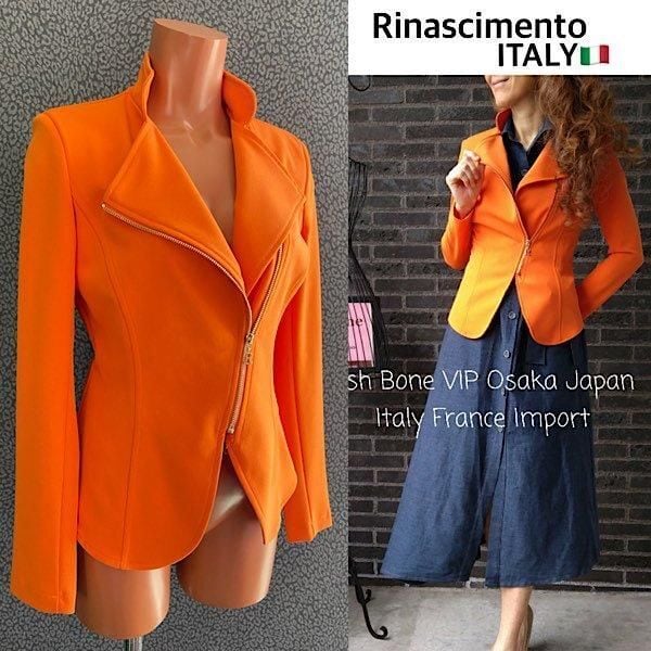 ITALY イタリア製インポート RINASCIMENTO/リナシメント ジャケット|フロントジッパー 2wayライダースデザイン ジャケット/オレンジ