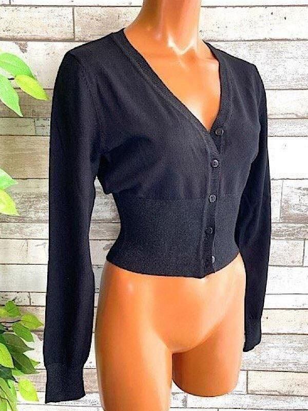 肩からちょっとかけるように羽織ったり持ってると便利なカーディガンです。上部から下までフロントはボタンですので、ちょっと留めても羽織るだけでもOK. 丈の長さがちょうどよく、ウエストすそは、幅広のリブ織りですので、きゅっとしまった感じもメリハリが良いです。