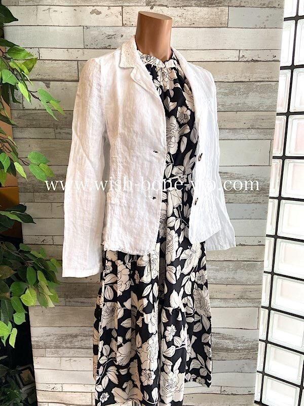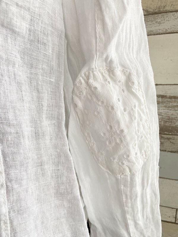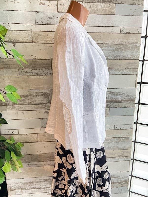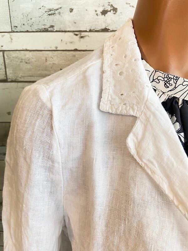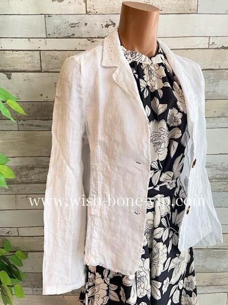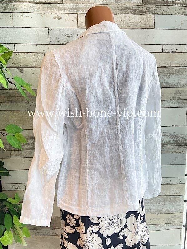 イタリア製サマージャケット|Made in ITALY|リネン麻 飾りエリ ジャケット/ホワイト