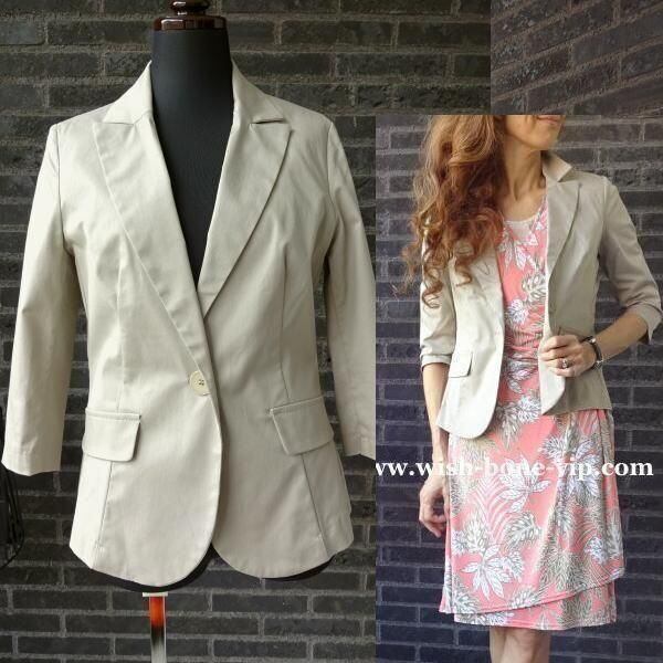 イタリア製ジャケット ITALY RINASCIMENTO/リナシメント|伸縮コットンストレット 美シルエット・七分袖 ジャケット/トープ(S)
