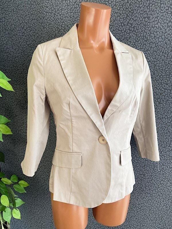 ちょう良いタイトなサイズです。バストは私は貧弱なので若干あまりますが、大きくはない感じ。肩は小さめです。伸縮のあるコットンストレッチ。きちんとした感じですのでお仕事でもおすすめ。ボタンは留めても留めなくて羽織るだけでもOK