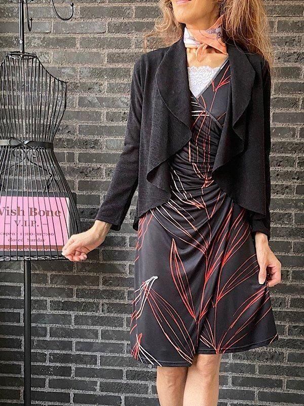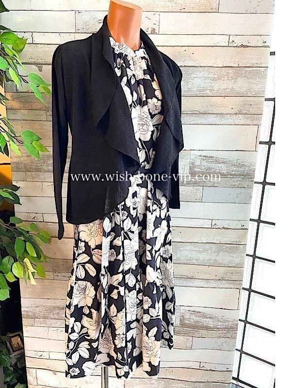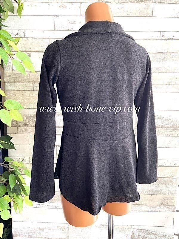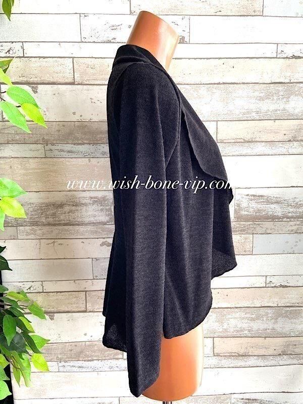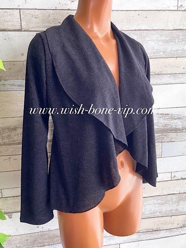 フランス製インポートカーディガン|BIG エリ・フロントフリル羽織りものカーディガン/ブラック