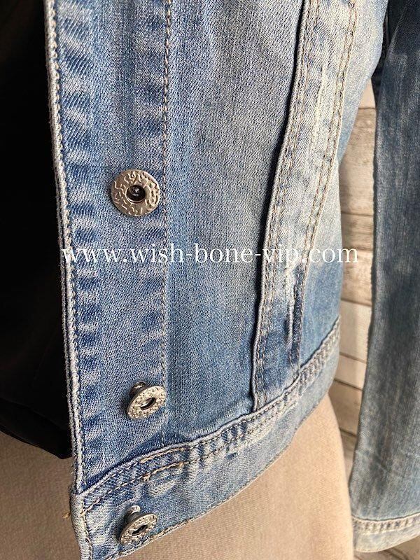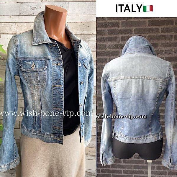 色の落ち具合とダメージ感がとてもキレイなイタリアデニムです。細身のシルエットとお袖の長さがイタリアらしいデザインです。