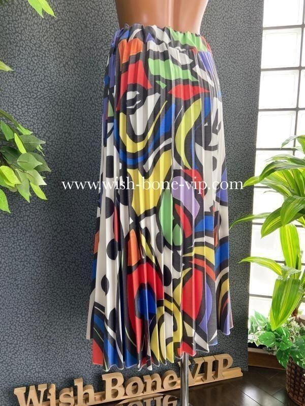 イタリア製ロングスカート| Made in ITALY インポート マキシスカート|プリーツ アートプリント