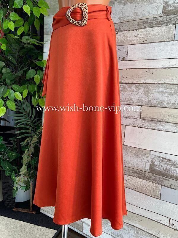 UKインポート Aラインロングスカート|レオパード(ヒョウ柄)バックルベルト付き/オレンジブラウン(SALE)