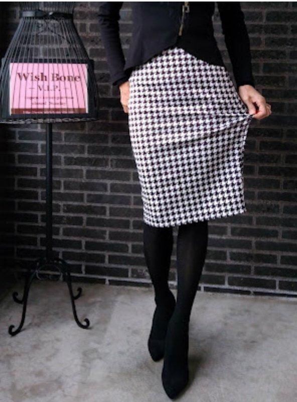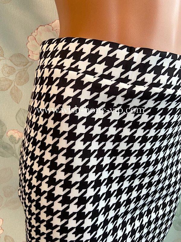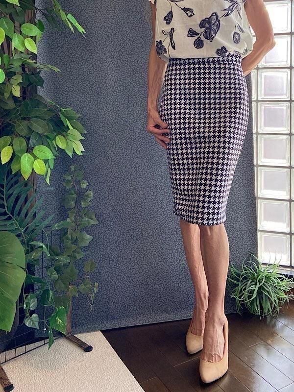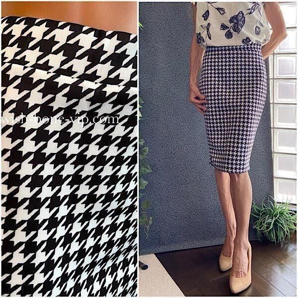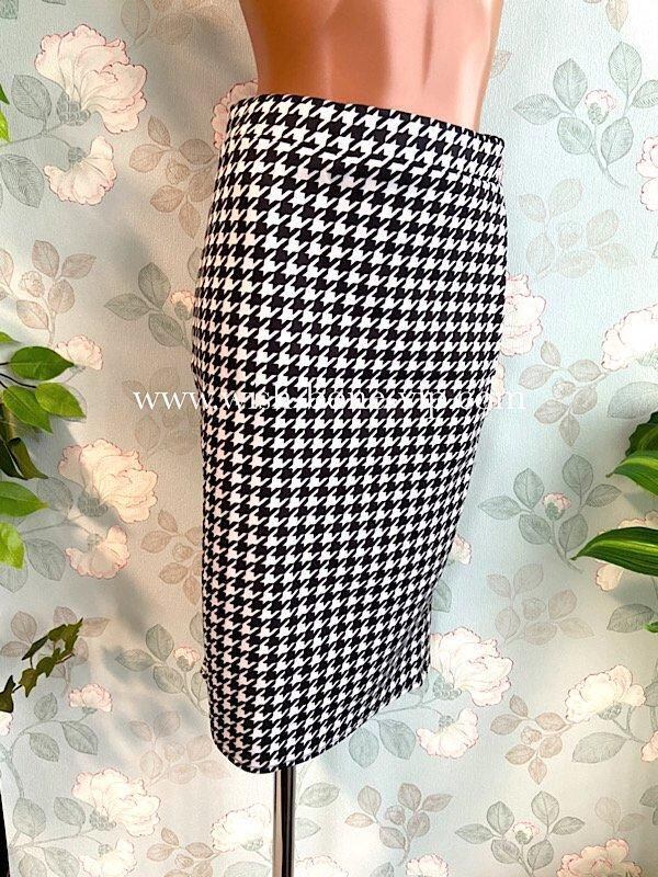 UKイギリスインポート|タイトスカート・ストレッチ・ジャージ ペンシルスカート/ブラック&ホワイト千鳥格子(10)(12)-【SALE】