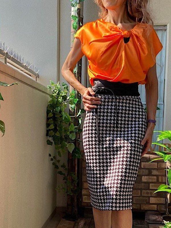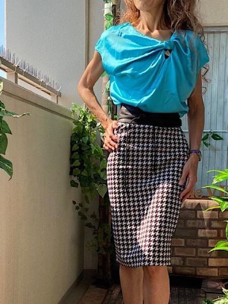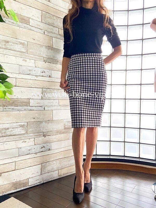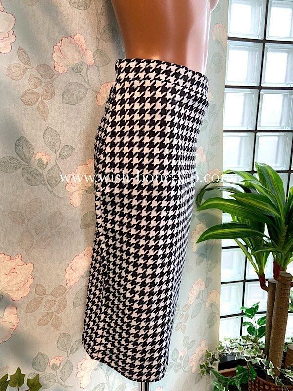 シックなモノトーン、ブラック&ホワイトがカッコいいUKイギリス、ストレッチ製タイトスカートです。千鳥格子のタイトスカートは、トップスの合わせ方で色々コーディネートも楽しめますよ。