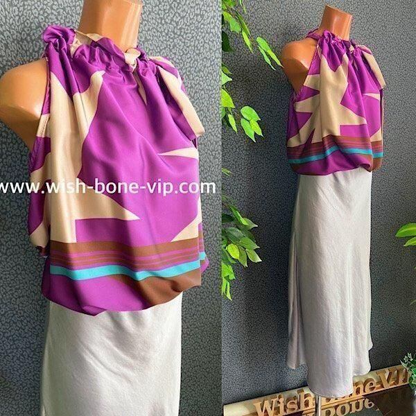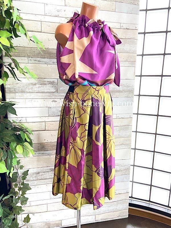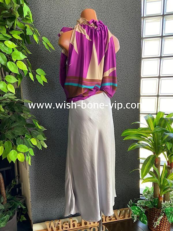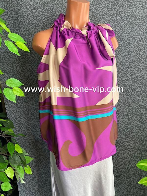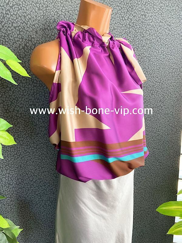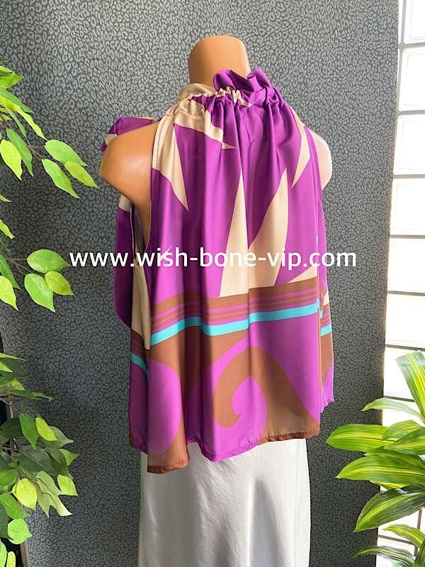 鮮やかな色合いが目を引くスカーフのようなトップスです。