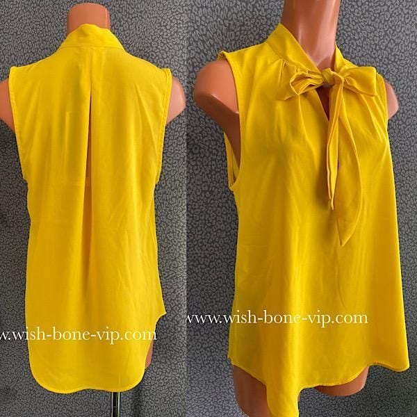 1枚ってるとコーディネイトに便利なノースリーブトップスです。サラッと軽く、フロントのリボンのくくり方で調節できます。リボン結びでも、棒タイのように垂らしてもOKです
