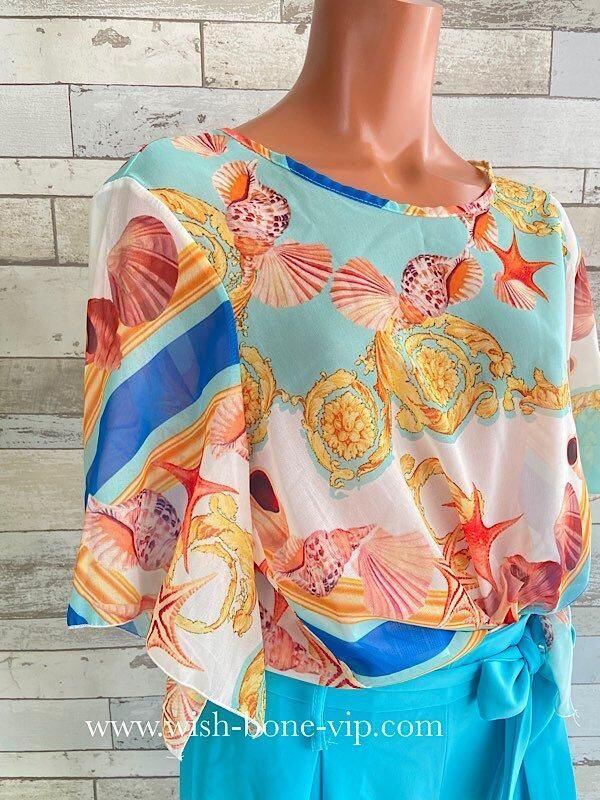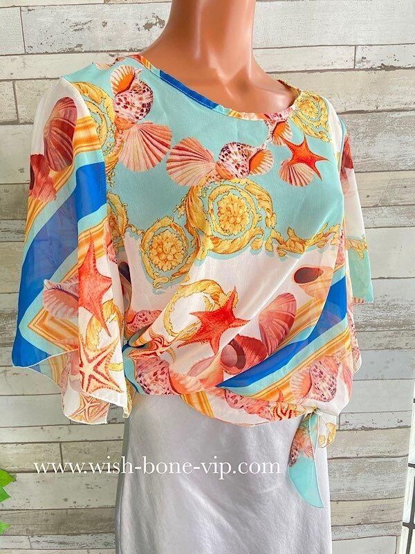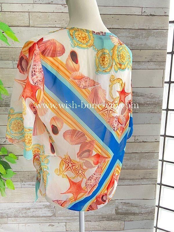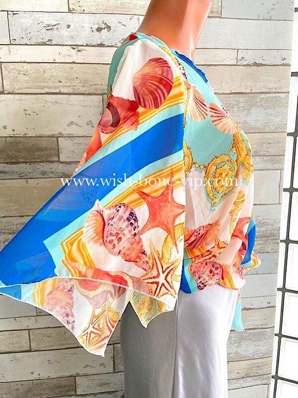 イタリア製デザイントップス|RINASCIMENTO ITALY(リナシメント) マリン柄・シェルプリント&シフォン お袖がひらひらトップス