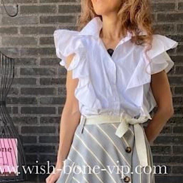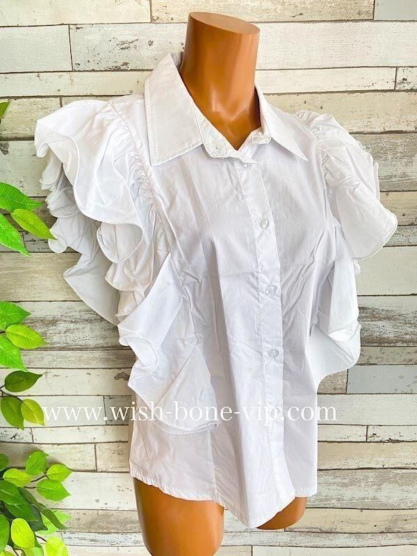 イタリア製フリルシャツ|Made in ITALY|BIGフリル コットン インポートシャツ・ブラウス/ホワイト