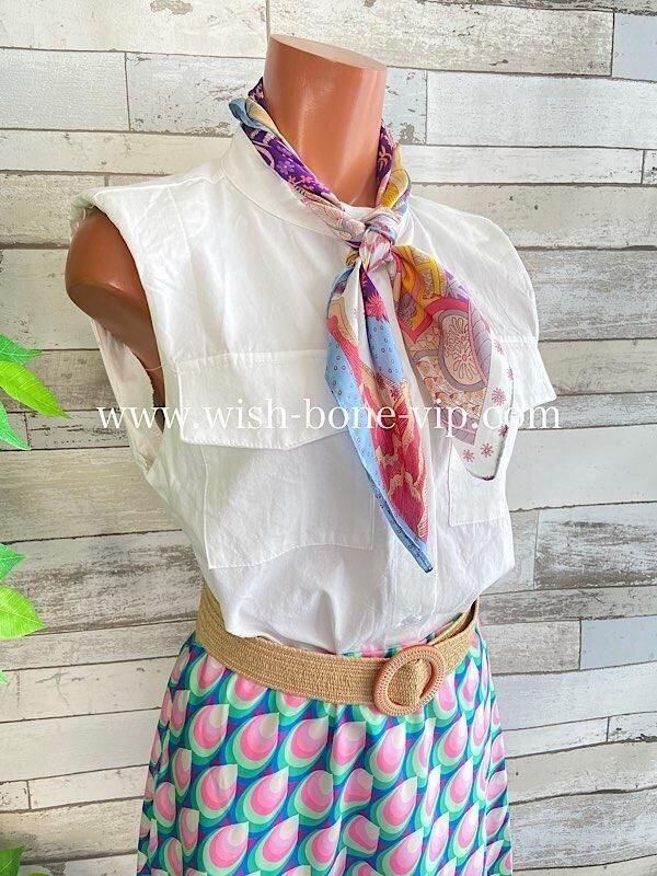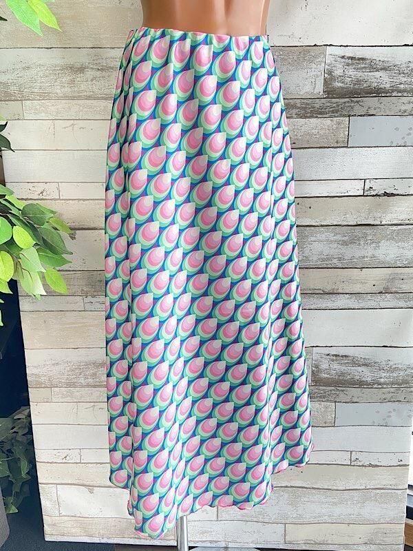 イタリア製スカート|ロング・ミモレ・Aラインスカート| Made in ITALY インポート レトロプリントロングスカート・ピンク&ブルー系