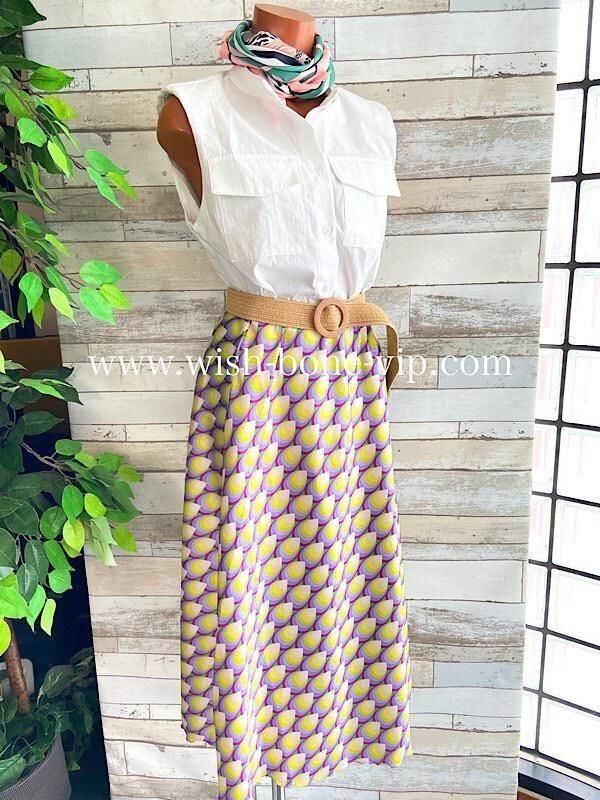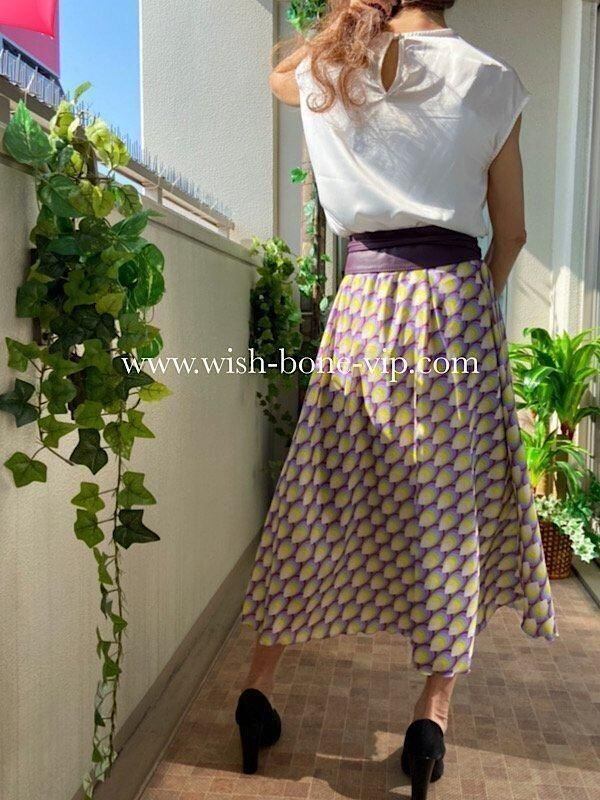 イタリア製スカート|ロング・ミモレ・Aラインスカート| Made in ITALY インポート レトロプリントロングスカート・パープル&イエロー