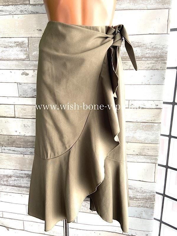 イタリア製ラップ巻きスカート|RINASCIMENTO ITALY(リナシメント)|フリル&アシンメトリースカート/カーキ