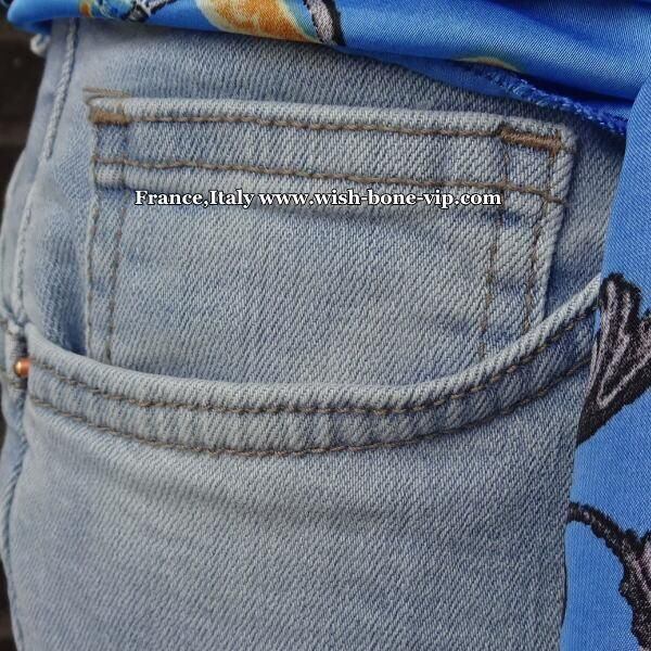 こちらのデニムパンツは、S着用でピチピチ過ぎないちょうど。ストレッチがほんとにいいです。足の曲げ伸ばしもストレス無し!です。ウエストのツヤスカーフがアクセント!今年っぽいですよ。もちろん取り外し可能です。イタリア製のデニムは伸縮がとても良いので、ピチピチに見えるけどストレッチが良いので苦しくないですよ