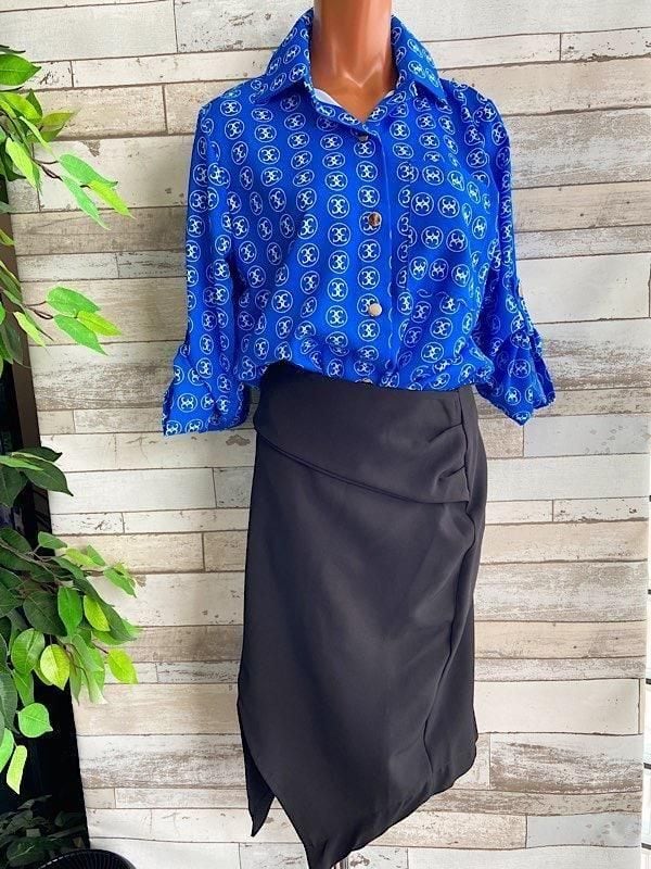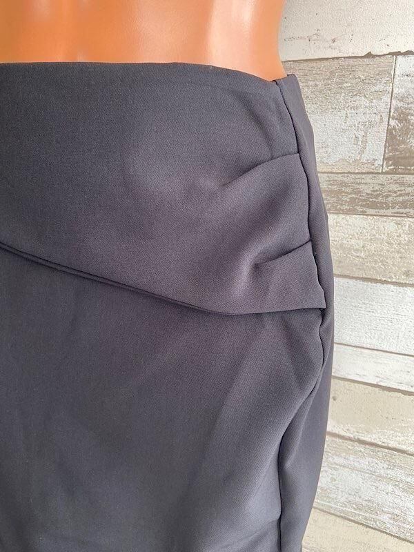 とてもキレイなタイトスカート。斜めフロントのスリットが程よく女っぽいですよ。丈も短すぎないので上品に着ていただけそうです。トップスの合わせ方でパーティーっぽくもOK.カジュアルに着るのもOK!!です。お腹の辺りはもう一枚、幅広のベルト風にかぶってるので、ちょっとはお腹が気にならないかもです。