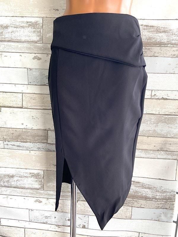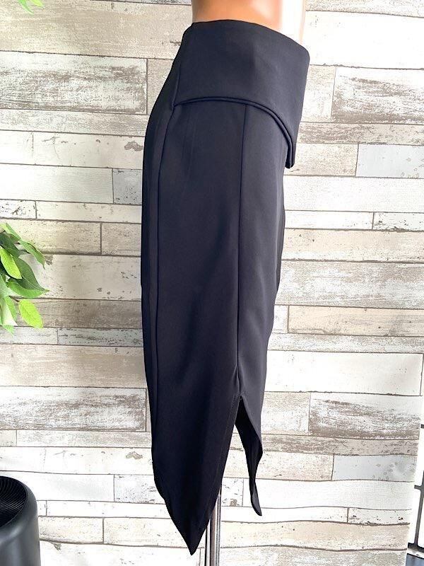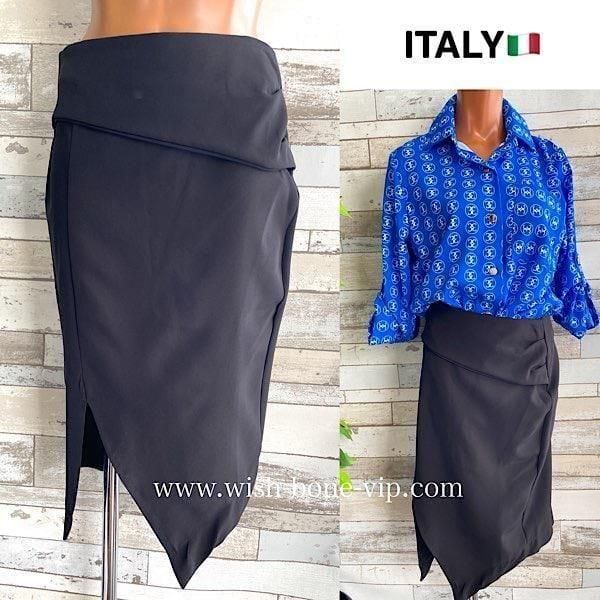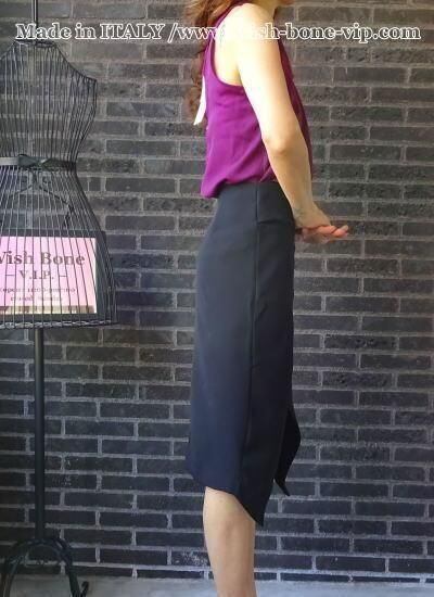 イタリア製タイトスカート ブラック無地スカート|made in ITALY|前スリット&アシンメトリースカート/ブラック(S)【アウトレットSAIL】