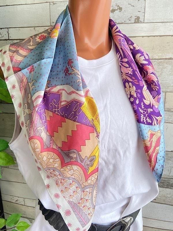【イタリアインポート】 スクエア小さめスカーフ・バッグスカーフ/ピンク・パープル・ブルー