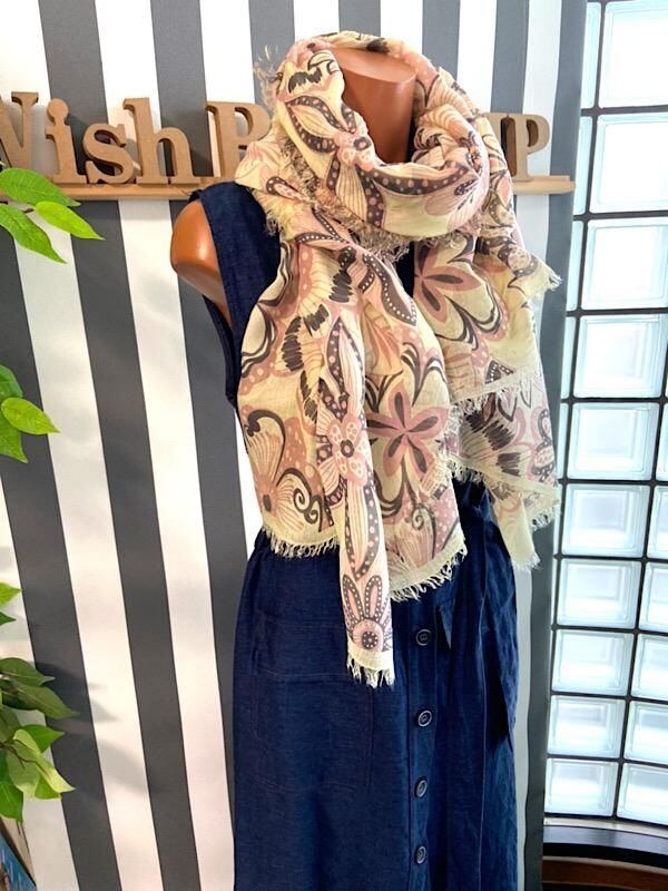 春夏にはショール代わりにもなり、独特の色合いはおしゃれな街、イタリアならではです。1枚サラッと巻くだけで普段のお洋服がワンラックアップしたかのよう。。肌触りもとても良いです。