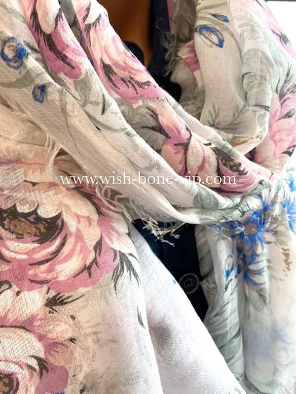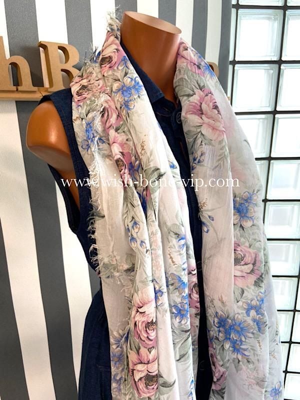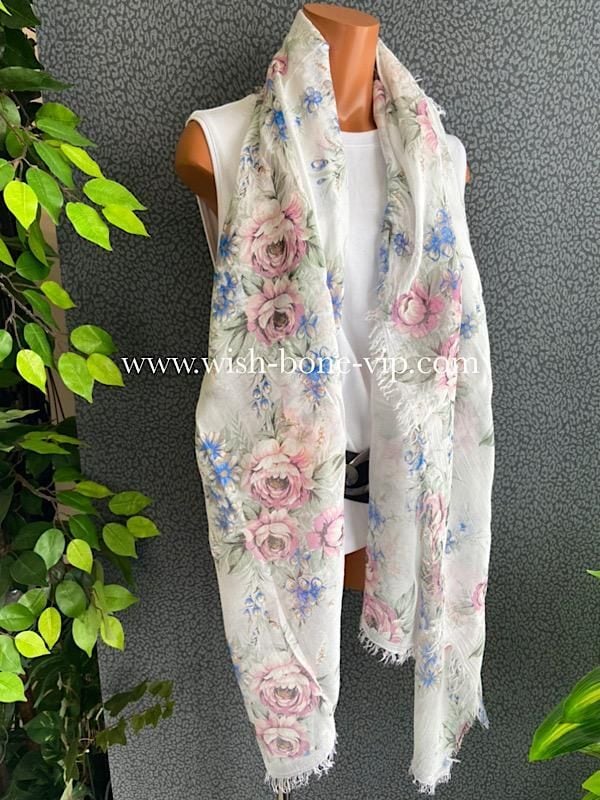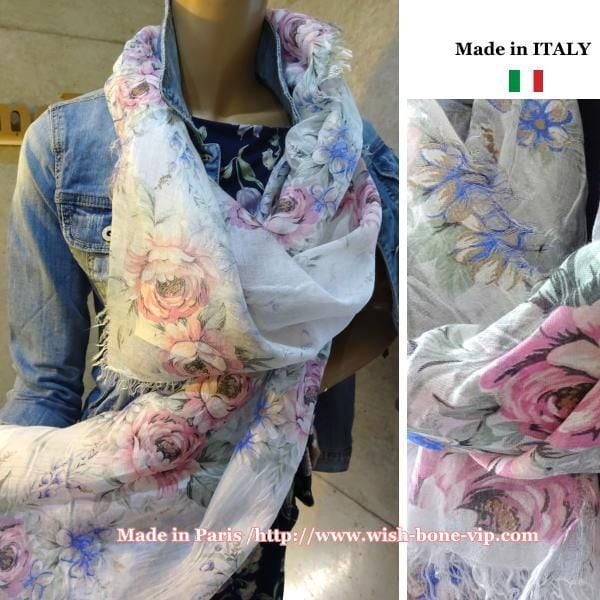 イタリア製 上質モダール・大判ロングストール/Made in ITALY|肌触りの良いマイクロモダール ストール・スカーフ/ホワイトフラワー