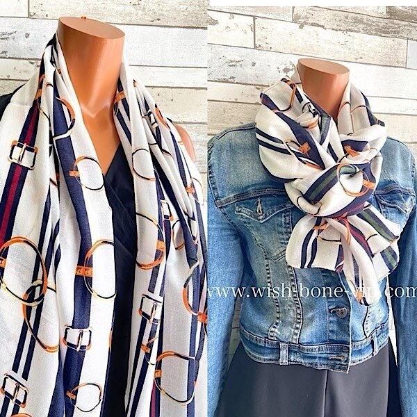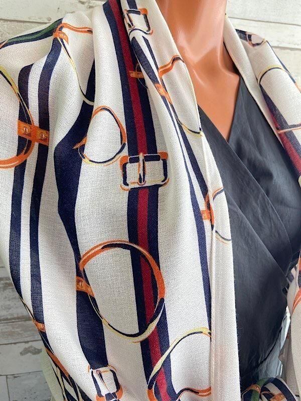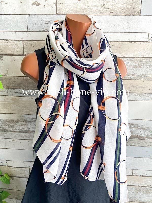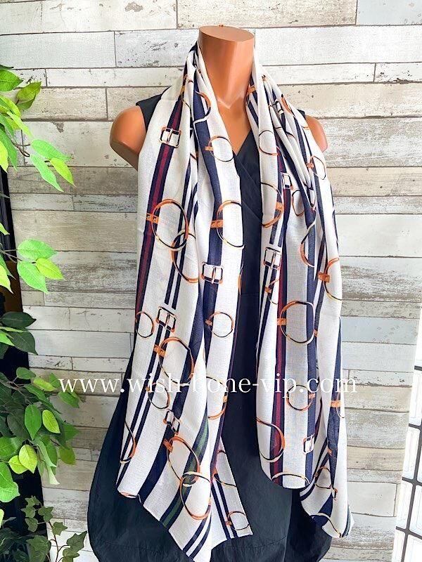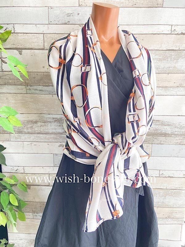 インポート 大判ストール|ロングストール・スカーフ|紫外線対策・寒暖差におしゃれストール|ホワイト&ベルト柄
