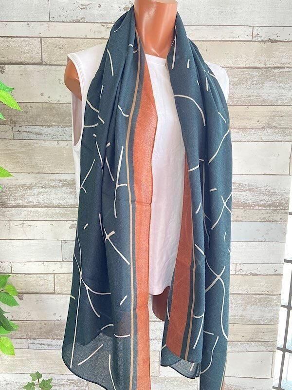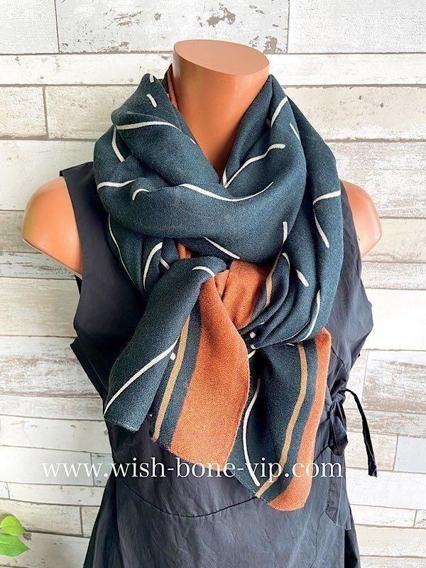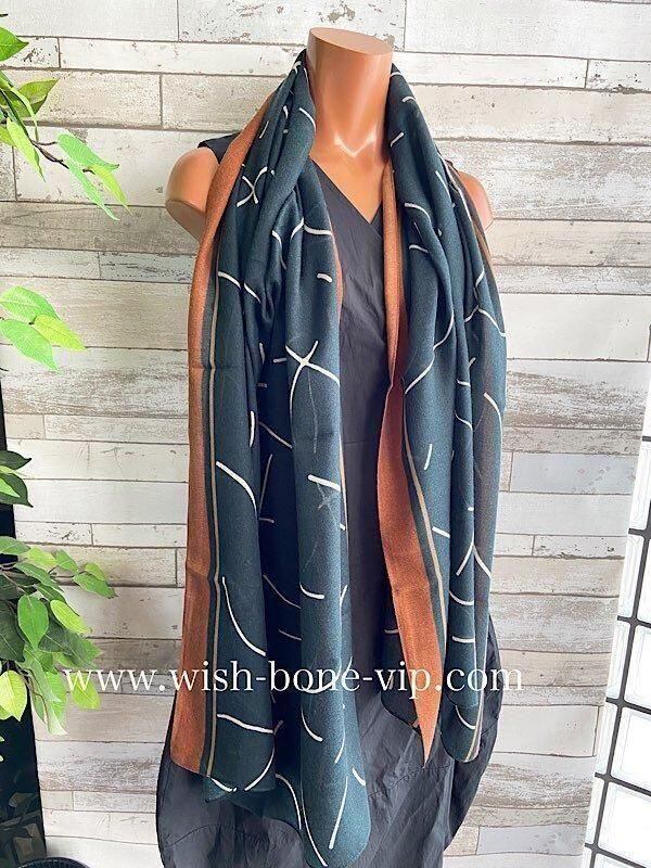 インポート 大判ストール|ロングストール・スカーフ|紫外線対策・寒暖差におしゃれストール|ダークグリーン&ブラウン