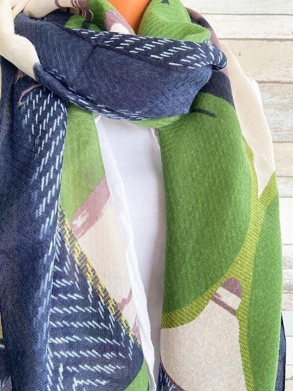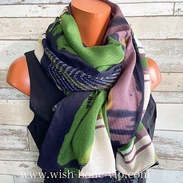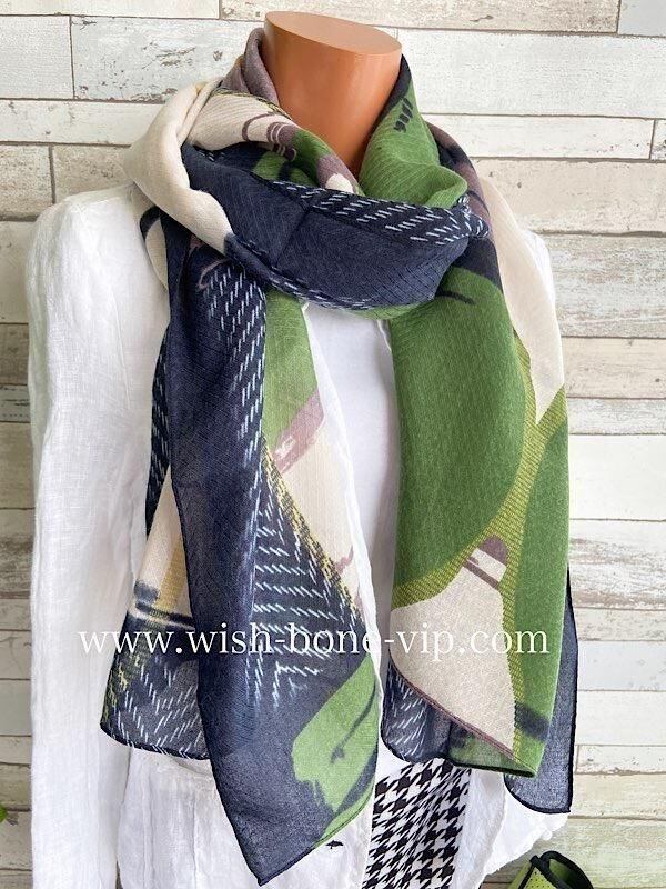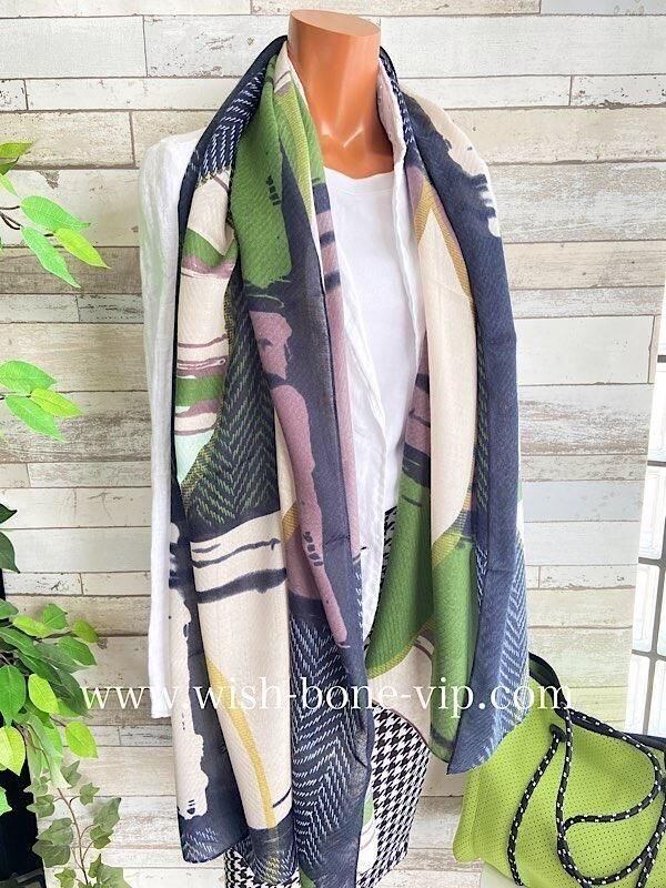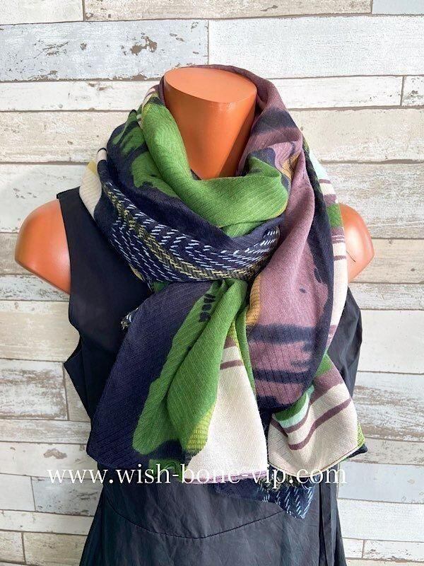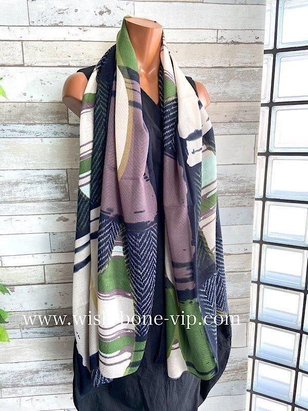 インポート 大判ストール|ロングストール・スカーフ|紫外線対策・寒暖差におしゃれストール|グリーン&渋いくすみパープル