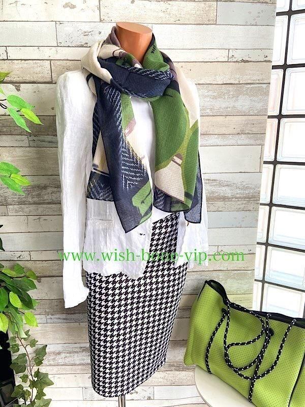 ぐるっと巻くだけでも良いですし、垂らすだけでもオシャレ。肩から羽織るように掛けるだけでも、ガラッとイメージが変わり新鮮な気分♪です。プレゼントにも最適です。