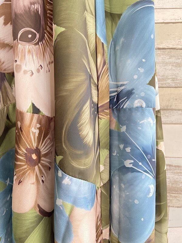 イタリア製インポートロングワンピース・ロングドレス・ミモレワンピース|Made in ITALY /渋フラワー ブルーブラウン(Free)