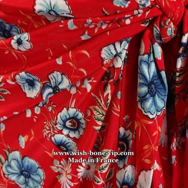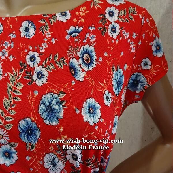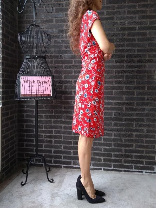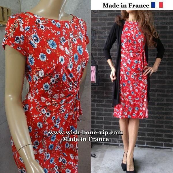 フランス製インポートワンピース|FIFILLES de PARIS フィフィーユ・パリ|プリントワンピース|ジャージ・ストレッチワンピース/ ボートネック&ウエスト絞り ワンピース/レッド系フラワー(T2)(T3)