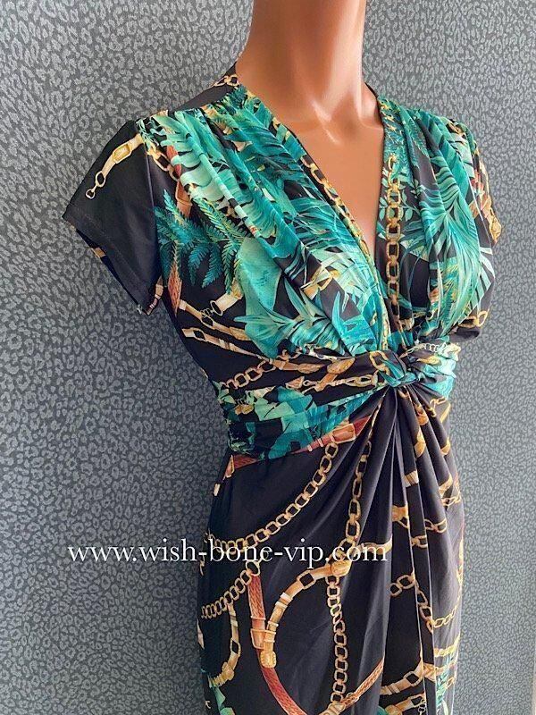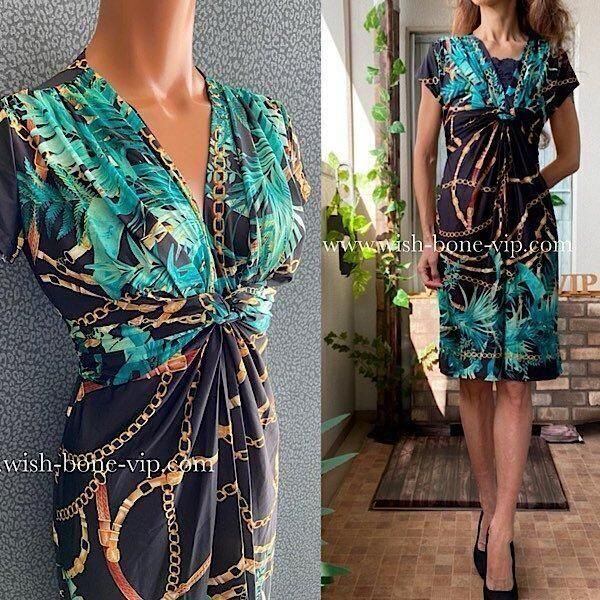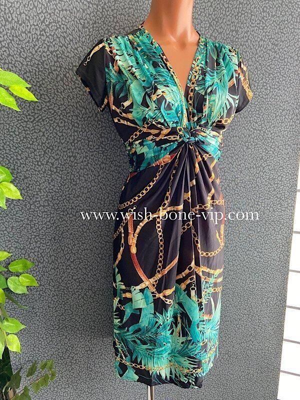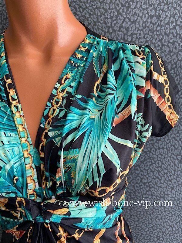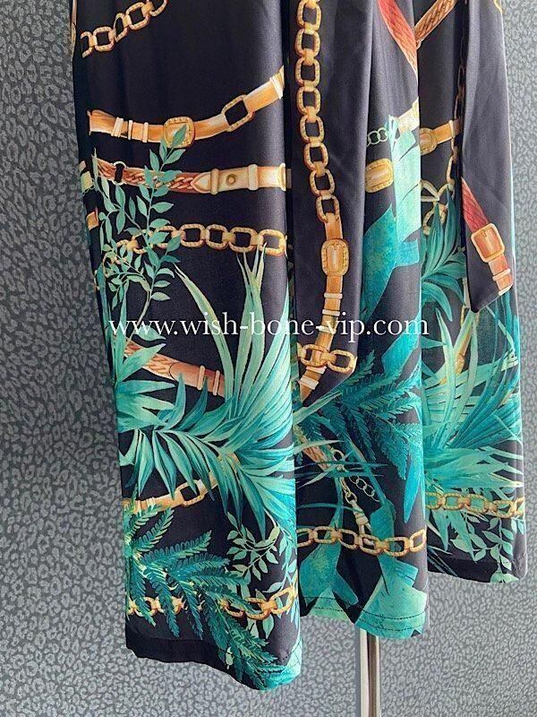 *ブラック&ブルーグリーン系ボタニカル、チェーンプリント